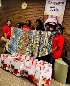 During this past school year, a talented group of students made sleeping mats out of plastic bags as a part of a service project. The students were part of Teddy Nantambi Mwonyonyi’s Family & Consumer Sciences class at Buchtel High School. The class consisted of 7th and 8th grade students.