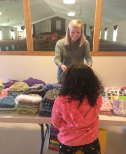 As families arrived, they had the opportunity to visit the giveaway tables. Giveaways included hand-knitted hats and gloves, APS tote bags, flannel pillowcases, socks and gently used books. The socks were donated to Project Rise by Rimer CLC and Sam Salem CLC as part of their special “Socktober” project. The pillow cases were hand-made by students from North High School in Marcia Torrence’s sewing 1 class. The hand-knitted hats and gloves were made by a special group called the Algonquin Spinners and Weavers, out of Carrollton, Ohio.